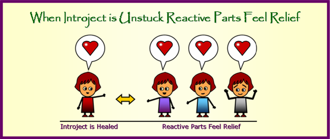 When stressful experiences happen in adulthood, the maladaptive introjects that formed in childhood can get activated, and deliver a caregiver’s wounding message to reactive parts. This keeps the reactive parts overreacting.